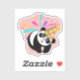 Ein fröhlicher Panda mit einem farbenfrohen Party-Hut, bereit, "im Stil feiern!" Dieser Aufkleber wäre ideal für einen festlichen Anlass oder um einer Sammlung eine Touch Spaß hinzuzufügen.