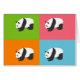Diese Abbildung wird mit vier Panda in verschiedenen Farben kombiniert.