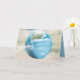Welt-Globus mit medizinischer Gesichtsmaske in Wolken zum Nachdenken