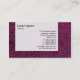 Eine Visitenkartenvorlage mit einem attraktiven, halbtransparenten Panel, das mit einem 3/8 Zoll links Hauptvorteil am links und am unteren Ende angeordnet ist, mit einem größeren 3/4 Zoll-Rand rechts. Der Hintergrund ist mit einer attraktiven abstrakten Textur, einem Foto oder einem Kunstwerk geschmückt, das nach Wunsch auch durch ein eigenes Bild ersetzt werden kann. Firmendetails auf der Vorderseite mit Namen und Kontaktdaten auf der Rückseite. Das Design kann auch weiter angepasst werden. Das quadratische Logo, das in diesem Design verwendet wird, stammt von einem von Zazzle's nützlichen Schriftart, es kann als dekorative Logo-Funktion beibehalten werden, ersetzt durch ein anderes Symbol oder Ihr eigenes Logo.