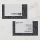 Eine Visitenkartenvorlage mit einem attraktiven, halbtransparenten Panel, das mit einem 3/8 Zoll links Hauptvorteil am links und am unteren Ende angeordnet ist, mit einem größeren 3/4 Zoll-Rand rechts. Der Hintergrund ist mit einer attraktiven abstrakten Textur, einem Foto oder einem Kunstwerk geschmückt, das nach Wunsch auch durch ein eigenes Bild ersetzt werden kann. Firmendetails auf der Vorderseite mit Namen und Kontaktdaten auf der Rückseite. Das Design kann auch weiter angepasst werden. Das quadratische Logo, das in diesem Design verwendet wird, stammt von einem von Zazzle's nützlichen Schriftart, es kann als dekorative Logo-Funktion beibehalten werden, ersetzt durch ein anderes Symbol oder Ihr eigenes Logo.