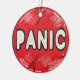Das Panic Button Design zeigt einen großen roten Knopf mit dem Wort "Panik". Ist es Zeit, es noch zu drücken? Spaß Grafik für Zeiten, wenn man den Panik-Knopf drückt, ist die offensichtliche Antwort.