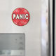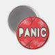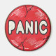 Das Panic Button Design zeigt einen großen roten Knopf mit dem Wort "Panik". Ist es Zeit, es noch zu drücken? Spaß Grafik für Zeiten, wenn man den Panik-Knopf drückt, ist die offensichtliche Antwort.