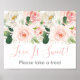 Ce panneau de salle élégant et floral "Love Is Sweet Bridal Shower" est un excellent moyen d'inviter vos invités à la table des desserts lors de votre baby shower. Le design présente de belles fleurs aquarelles rose blush avec des confettis pailletés dorés et des accents de poussière dorée. La calligraphie rose blush et le texte gris charbon coordonnés complètent le magnifique design floral.