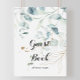 Ce panneau de livre d'or à calligraphie dorée et eucalyptus rustique est parfait pour un mariage simple ou une baby shower. Ce dessin artistique présente des éléments floraux dorés dessinés à la main et un feuillage vert d'eucalyptus à l'aquarelle, inspirant la beauté naturelle.