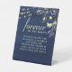 Honorez la mémoire de vos proches avec ce superbe panneau de mariage commémoratif bleu marine. Avec ses guirlandes lumineuses chaudes et ses accents floraux dorés, c'est un magnifique hommage pour votre cérémonie ou réception. Affichez-le sur une table commémorative pour les garder près de vous en ce jour spécial.
