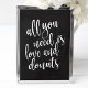 Un panneau de mariage élégant et moderne, avec le texte "Tout ce dont vous avez besoin, c'est d'amour et de donuts" dans une police d'écriture extravertie, la texture de pinceau ajoute une sensation spontanée et ludique. La couleur de fond peut être personnalisée en fonction de vos besoins et préférences, veuillez me contacter si vous avez une demande spéciale.