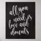 Un panneau de mariage élégant et moderne, avec le texte "Tout ce dont vous avez besoin, c'est d'amour et de beignets" dans une police d'écriture extravertie, la texture de pinceau ajoute une sensation spontanée et ludique. La couleur de fond peut être personnalisée selon vos besoins et préférences, veuillez me contacter si vous avez une demande spéciale.
