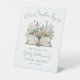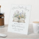 Un panneau de bienvenue charmant pour une fête de mariage inspiré du thème « Un nouveau chapitre commence ». Au centre du panneau se trouve un livre ouvert aquarellé avec des fleurs sauvages et de la verdure qui se déversent, présentant des tons rose blush doux, jaune, bleu et violet pour un look léger et joyeux.