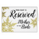 Assurez-vous que votre fête de mariage obtienne leur siège lors de votre cérémonie en créant un panneau "Réservé" personnalisé pour chacun de vos VIP. Avec un joli design de flocon de neige et un effet feuille d'or imprimé, ce panneau "Réservé" correspond parfaitement au reste de la collection de papeterie mariage Gold Snowflake.