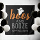 Cette tapisserie moderne et mignonne de panneau de signalisation pour soirée d'Halloween « Boos and Booze » comporte un texte en lettrage orange, gris charbon et blanc avec un petit accent de fantôme.