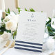 Conçu pour correspondre à notre collection de mariages Nautical Mix, cet élégant panneau de style côtier est parfait pour placer à votre réception pour afficher les sélections de menu du soir. Personnalisez l'en-tête et les champs de texte, ornés d'un trio de bandes bleu marine nautique et d'une ancre en haut.