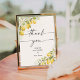 Panneau de Merci Mariage Citrus vert citron. Ce panneau de Merci de mariage élégant et élégant présente de magnifiques fleurs d'agrumes vert citron peintes à la main. Trouvez les articles correspondants dans la collection de fleurs d'agrumes vert citron.