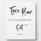 Panneau de bar Taco. Le design est basé sur la police de caractères des écritures en noir et blanc. Simple et moderne.