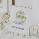 Panneau Texte personnalisé avec illustration de fleur sauvage, de verdure et de teacup. Customisez avec votre propre texte si vous le souhaitez.