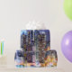 Schönes Panorama von New York in der Nacht. Berühmte Gebäude, die glänzen