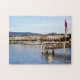 Panoramasicht auf Genf mit traditionellem Schiff im Hafenviertel, Kanton Genf, Schweiz