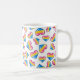 Dieses Muster zeigt rosa, gelbe und blaue Herzen auf weißem Hintergrund. Ideal für Stolz.