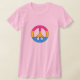 T - Shirt mit einem Friedenssymbol-Design in einer farbigen Stolperflagge; rosa, gelb und blau Streifen Stolperflagge