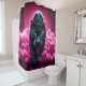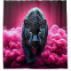 Dieser Duschvorhang hat einen Panther in rosa Rauch, der darauf abgebildet ist.