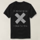 Ein lustiges Shirt mit einem Bild eines "X" machte aus Rohrband heraus, das sagt, dass es nicht gerade ihm benötigt Rohrband gebrochen ist