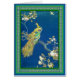 Une carte élégante faite à partir d'une image d'un textile antique d'un paon étant perché dans un arbre de fleurs de cerisier.