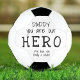 Personalisiert Daddy du bist mein Helden Schwarz und Weiß Vatertag Foto Fußball Ball. Text ist in handgezeichnet Schriftart. Du kannst Papa in Papa, Papa, Pap,... ändern und deine Namen hinzufügen. Ein niedliches Geschenk und ein süßer Sake für den Vatertag für Papa.
