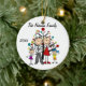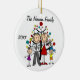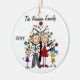 Assez autour de l'ornement en céramique de vacances de Noël de souvenir comporte un chiffre famille de bâton comprenant un papa, une maman, une fille, et un garçon devant un arbre de Noël décoré avec des secteurs que vous pouvez customiser avec votre nom de famille et l'année en cours ! Cet ornement mignon de souvenir de vacances fait un grand cadeau pour que la jeune famille commémore une année spéciale !