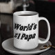 Mug with World's #1 papa in 3D black text. Mug disponible en plusieurs styles et couleurs.