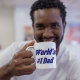 Mug avec le papa #1 du monde en texte bleu foncé 3D. Mug disponible en plusieurs styles et couleurs.