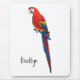 Dieses Design zeichnet sich durch einen glänzenden, leuchtend roten Ara Papagei im Cartoon-Stil aus.