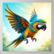 Dieses actiongeladene Design zeichnet sich durch einen lebendigen Papagei aus, dessen Flügel sich weit gegen einen klaren Himmel ausbreiten. Eine perfekte Wahl für Vogelliebhaber und den Nervenkitzel des Fliegens.