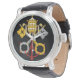 Uhr, Vintage Männeruhr mit schwarzem Lederarmband