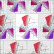 Dieses Muster zeichnet sich durch ein dekonstruiertes Nadelrad mit abstrakten Linien und Farbverlauf aus. Die Hauptfarben sind grau, lila, rosa/rot und weiß.