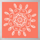 Dieses weiße Mandala liegt auf einem papaya-Orangen- oder Lachshintergrund. Die Farben sind hell und warm. Teil der Sammlung Avanenn Mandala.
