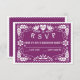 Papel picado inséparables mariage violet carte de réponse RSVP affichant deux inséparables et un coeur d'amour, le mot amour et fleurs. Ce style d'art folklorique mexicain design mariage floral est personnalisable oralement. Notez qu'il ne s'agit pas vraiment de papier découpé laser juste des images imprimées.