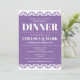 Ein Pappel Picado Probe Dinner Einladung mit festlichem lila Hintergrund.