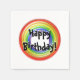 Ringe von immer größer werdender Form Mitte Bild (lila, blau, grün, gelb, orange, rot). Sie können den schwarzen Text mit weißem "Schatten" anpassen, der standardmäßig auf "Geburtstag glücklich!" steht.