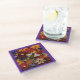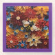 Unusual Paper Quilling Effect Design of a Bee surrounded by red, orange, blue and yellow flowers glass coaster.