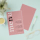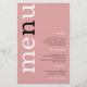 PAPER Dusty Rose Typografie Hochzeitsmenü. PAPER (nicht Karte) Alternative in Größe 5,5" x 8,5". Modernes Typografie-Design mit Menu in großer Typografie in Weiß mit dem "n" in schwarz rotiert und auf der links Seite auf einem Hintergrund staubiger Rose rosa.