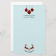 Papeterie personnalisée qui dit "Joyeux Noël" en texte courbe. Conçu avec une illustration de 2 cerfs de Noël sautant. Les cerfs sont faits de sériole rouge et noire, avec un peu de coeur entre eux. Les décorations de Noël en plaid rouge et noir sont accrochées au sommet.