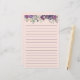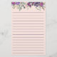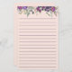 Feuilles mignons et girly violet et rose floral et sauge vert sur papier à lettres personnel rose avec lignes.