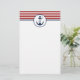 Décoration rouge et bleu marine avec rayures et ancre nautiques.