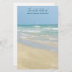 Cette belle photo de bord de mer présente de belles vagues bleues et vertes qui s'avancent sur le rivage de la plage. Le joli bleu clair du ciel ensoleillé et de l'océan ainsi que le sable clair de la plage font l'arrière - plan parfait pour composer vos lettres pendant les vacances d'été. Parfait pour une maison de plage à partir pour leurs invités de laisser les avis sur leur maison de vacances.