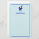 Papier à papeterie personnalisé avec un arrière - plan bleu vert clair. Illustré par une paire de cerfs bleus scandinaves portant des foulards rouges. Avec des marquages décoratifs sur le corps.