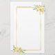 Cette jolie stationnaire fleurie jaune personnalisée est encadrée d'un beau rectangle doré bordé de feuilles verts et d'une rose jaune. Ce beau papier personnalisé léger est parfait pour la correspondance de printemps ou d'été.