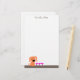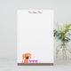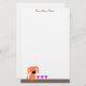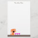 Papeterie douce personnalisée avec votre nom. Fleurs oranges mignonnes de chien et de coeur.