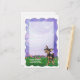 Animal Parade Chihuahua Chig Coordination Stationery et Accessoires personnalisés présente notre art original d'un personnage Chihuahua Chichien mignon noir et tan debout dans une cour herbeuse avec un ciel bleu et violet texturé avec une bordure ondulée violet ludique. Cet art amusant pour animaux de compagnie, peint par Traci Van Wagoner, un illustrateur de talent pour enfants, est parfait pour les amoureux du Chihuahua, les amoureux de les chiens et les amateurs d’art animal humoristique de tous âges. Sur beaucoup de nos accessoires fantaisistes de papeterie pour petits chiens, vous trouverez ce chien mignon qui va et vient avec sa tête sur un côté et cette queue sur l'autre. Rejoignez la Parade des animaux et souvenez-vous de quelqu'un que vous aimez avec un cadeau de nos jolies pièces de papeterie Chihuahua personnalisées et coordonnées. Malheur !