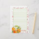 Un joli papier à papier de papeterie doublé d'un nom personnalisé décoré d'un trio de clémentines orange vif dessinées à l'encre et peintes à l'aquarelle sur un arrière - plan d'aquarelle rouge.
