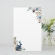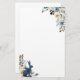 Un lapin d'aquarelle bleu se trouve devant un joli bouquet de couleur tan, bleu gris et vert tendre au coin inférieur gauche de cette papeterie. Un bouquet correspondant se trouve en haut à droite. Les images sont placées sur un arrière - plan blanc. Très jolie et unique pour votre correspondance !